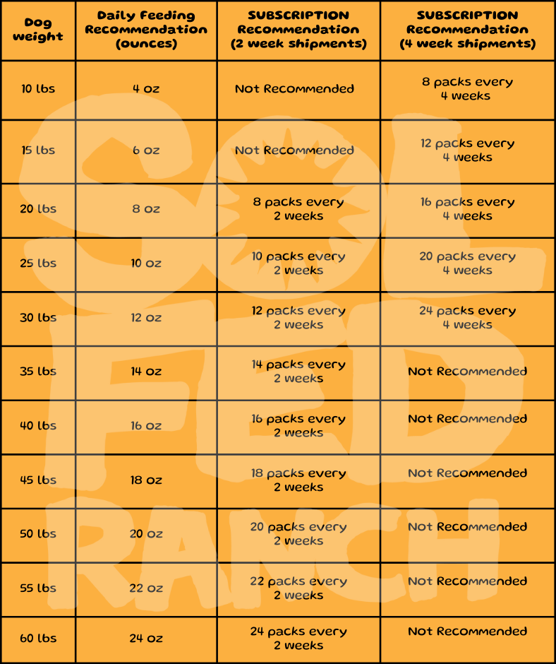 Raw Dog Food Feeding Chart